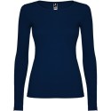 Camiseta semientallada, de manga larga y cuello acabado con ribete fino. Sin puños. Costuras laterales.