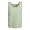 Camiseta amplia de mujer de tirante ancho. Escote y sisas en canalé 1x1. Bajo con forma redondeada. Costuras laterales.