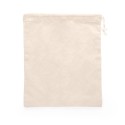 Bolsa multiusos ideal para la compra, de línea eco 100% algodón 120 g/m². Color natural. Un lado de la bolsa en algodón suave y otro lado en ligera rejilla. Cierre de cordón y ajustador de plástico transparente.