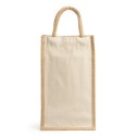 Bolsa de yute laminado y algodón. Doble compartimento y asas reforzadas. Ideal para dos botellas.