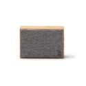 Altavoz inalámbrico con cuerpo elaborado en bambú y superficie en poliéster reciclado RPET, con 3W de potencia con batería recargable.