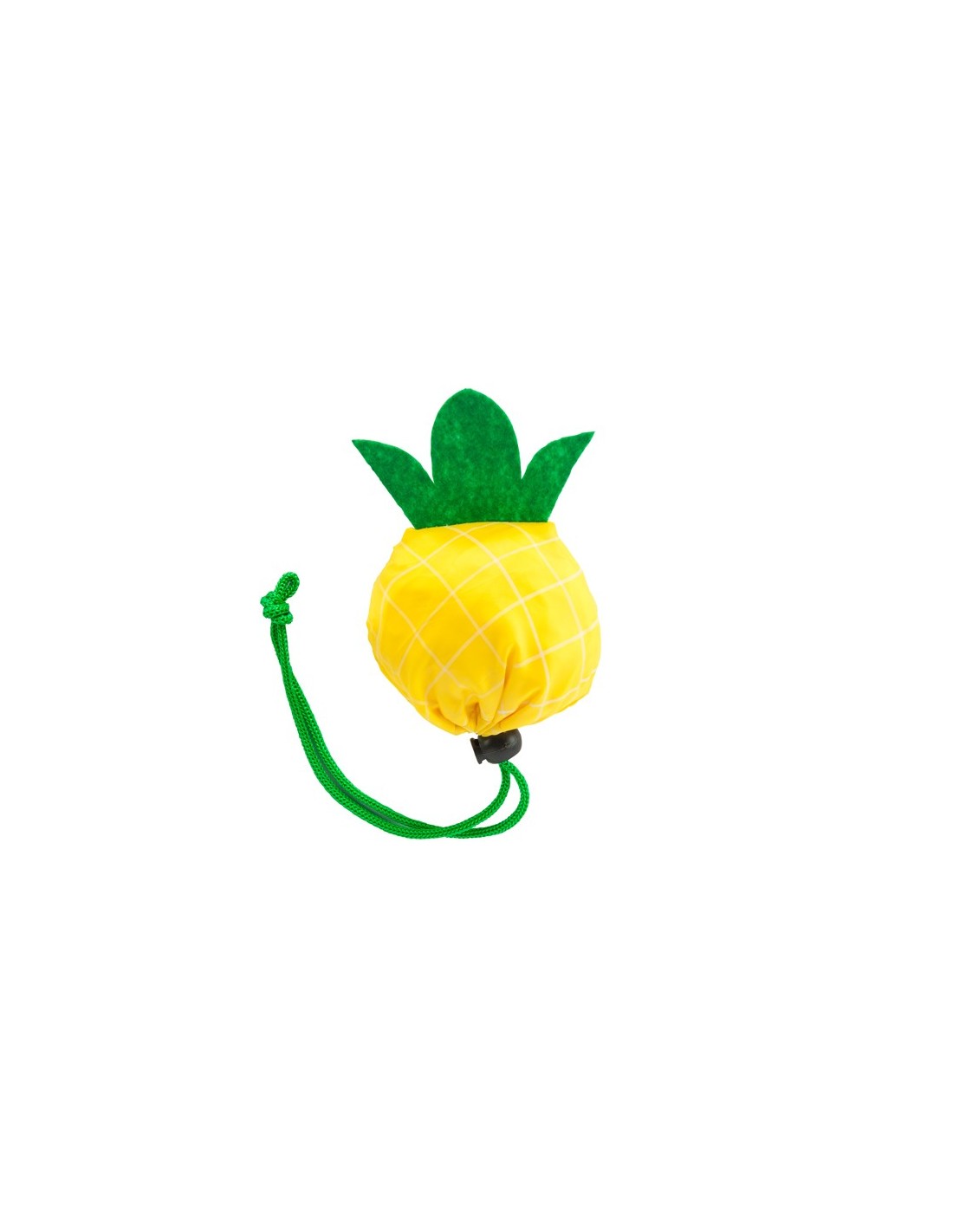 Bolsa de la compra plegable en suave poliéster 190T. Variados diseños de frutas con cordón ajustable para cierre.