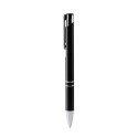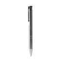 Bolígrafo con cuerpo de aluminio reciclado, con pulsador y detalles en acabado cromado. Carga jumbo de tinta azul.