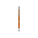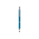 Bolígrafo con cuerpo de aluminio y pulsador en acabado cromado. Puntero táctil y carga jumbo de tinta azul. Disponible en varios colores.