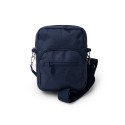 Bandolera realizada en 600D RPET. Compartimento principal con bolsillo interior y 2 bolsillos frontales con cierre de cremallera. Cinta ajustable con detalles metálicos.