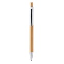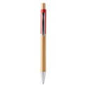 Bolígrafo con cuerpo y pulsador de bambú. Detalle en color de tacto suave. Punta y clip metálicos. Tinta azul.