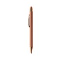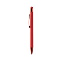 Bolígrafo pulsador y cuerpo metálico de tacto suave. Especial para marcaje láser. Puntero táctil. Detalles y puntero a conjunto con el color del cuerpo. Carga jumbo de tinta azul.