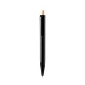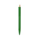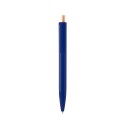 Bolígrafo de ABS reciclado con pulsador de bambú, con clip y punta integrada en el cuerpo. Carga normal de tinta azul.