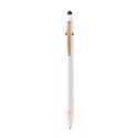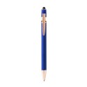 Bolígrafo metálico con tacto suave y detalles en color oro rosa. Carga Jumbo de tinta azul. Ideal para láser.