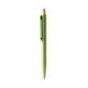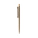 Bolígrafo elaborado de fibra de trigo con un pulsador de bambú y un clip ancho, perfecto para realizar marcaje. Con tinta azul, combinando sostenibilidad con funcionalidad para un escritura cómoda y ecológica.