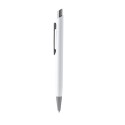 Bolígrafo pulsador con cuerpo de aluminio reciclado y detalles en acabado metálico mate, con cuerpo en textura suave. Tinta azul.