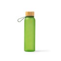 Bidón de cristal reciclado traslúcido. Cuenta con un elegante tapón de bambú a rosca y una práctica asa de transporte. Ideal para quienes buscan una opción ecológica y estilizada para mantenerse hidratados. Perfecto para usar en cualquier lugar, combinando sostenibilidad y diseño moderno en un solo producto. Capacidad de 500 ml.