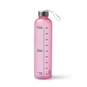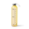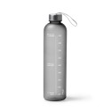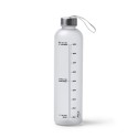 Bidón de tritán con cuerpo translúcido, tapón con cierre a rosca y asa de transporte. Incorpora recomendación de hidratación e indicador de capacidad. Capacidad 1L