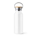 Bidón de acero inoxidable 304 doble pared con tapa de bambú. Capacidad 500 ml. Posibilidad de realizar sublimación sobre el color blanco. Asa metálica plegable. Disponible en una gran variedad de colores. Composición: Acero inoxidable 304 Observaciones: Presentación en caja diseño.