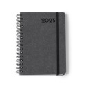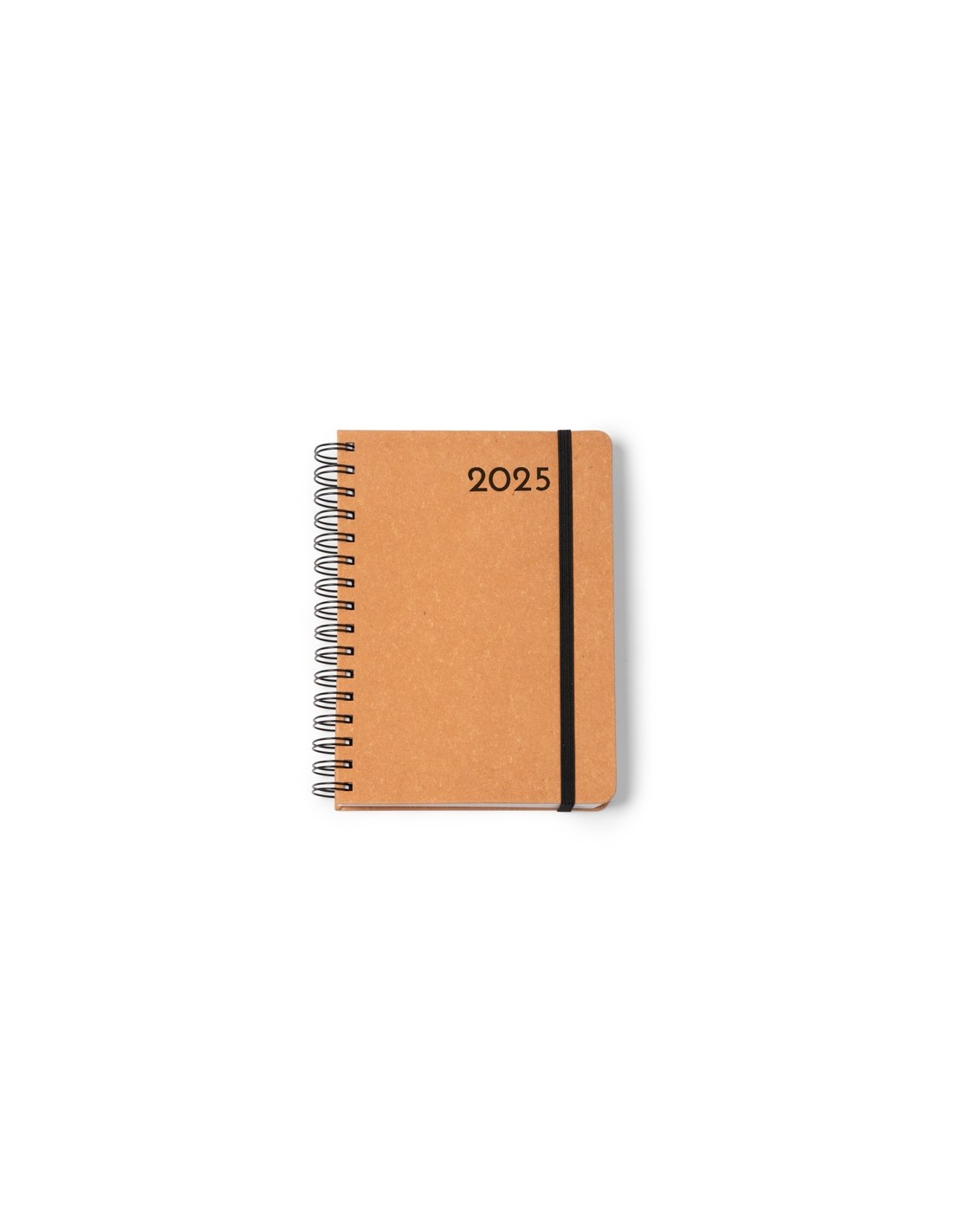 Agenda con anillas tamaño A5, con tapas de cuero reciclado grabadas en bajo relieve y banda elástica. Cuenta con 348 páginas de papel blanco y 4 páginas adicionales con mapas. Ideal para mantener tus notas organizadas con estilo y durabilidad.