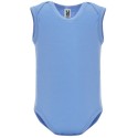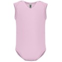 Body de bebé de tirantes de punto liso. Cuello redondo, sisas y bajo ribeteado en canalé 1x1. Cierre con botones a presión en la entrepierna. Hombro de apertura cruzada.