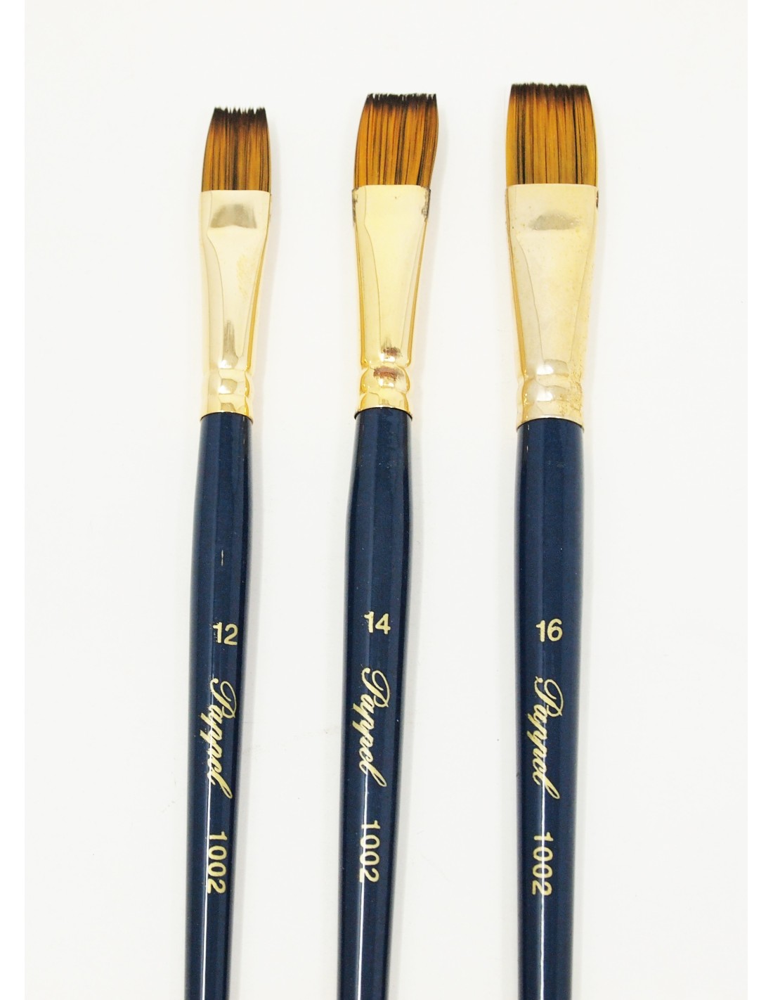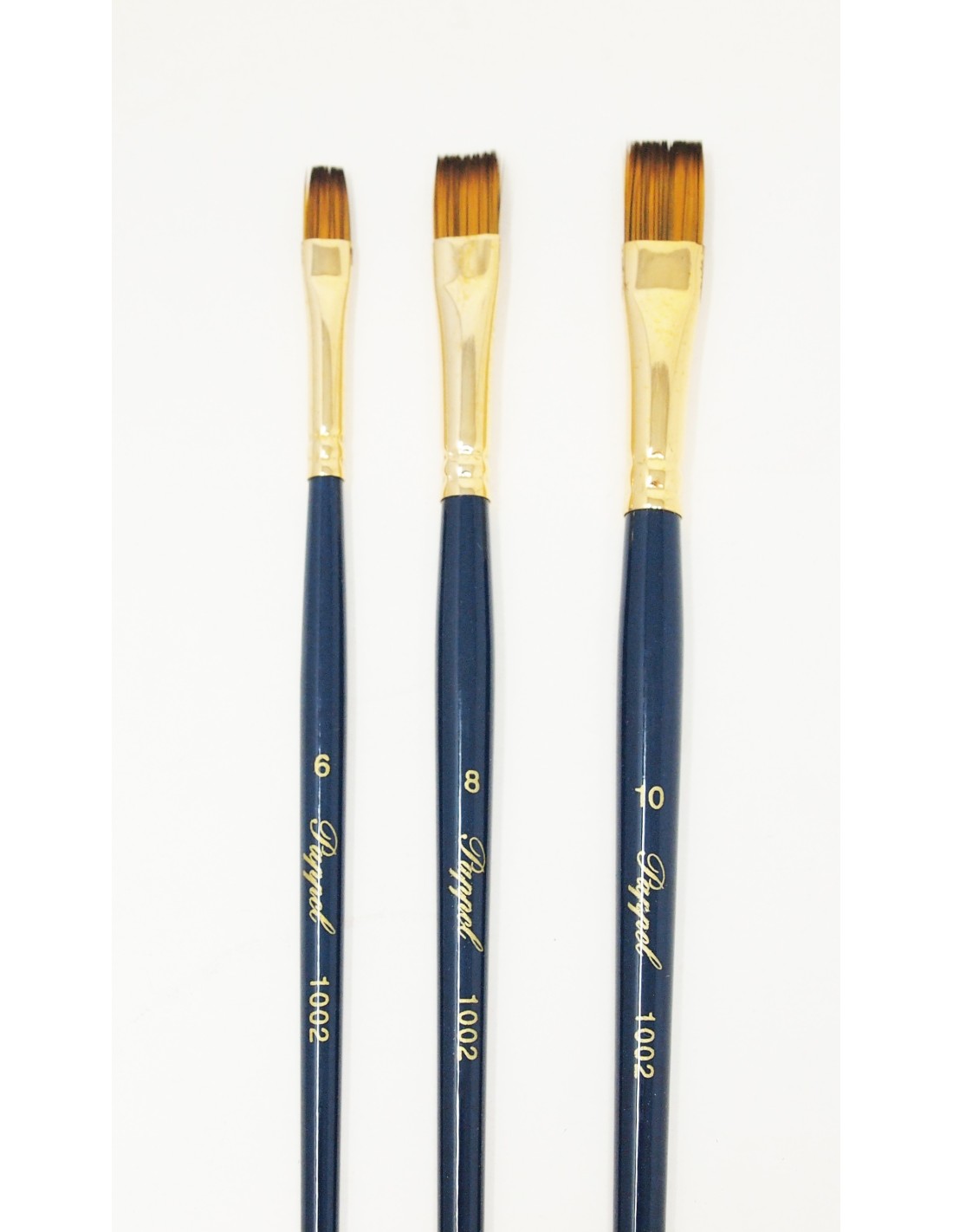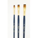 Pinceles fabricados con pelo sintéticom forma plana y punta cuadrada. Mango corto perfecto para utilizar con acuarela u otras técnicas húmedas. Disponible en diferentes tamaños.