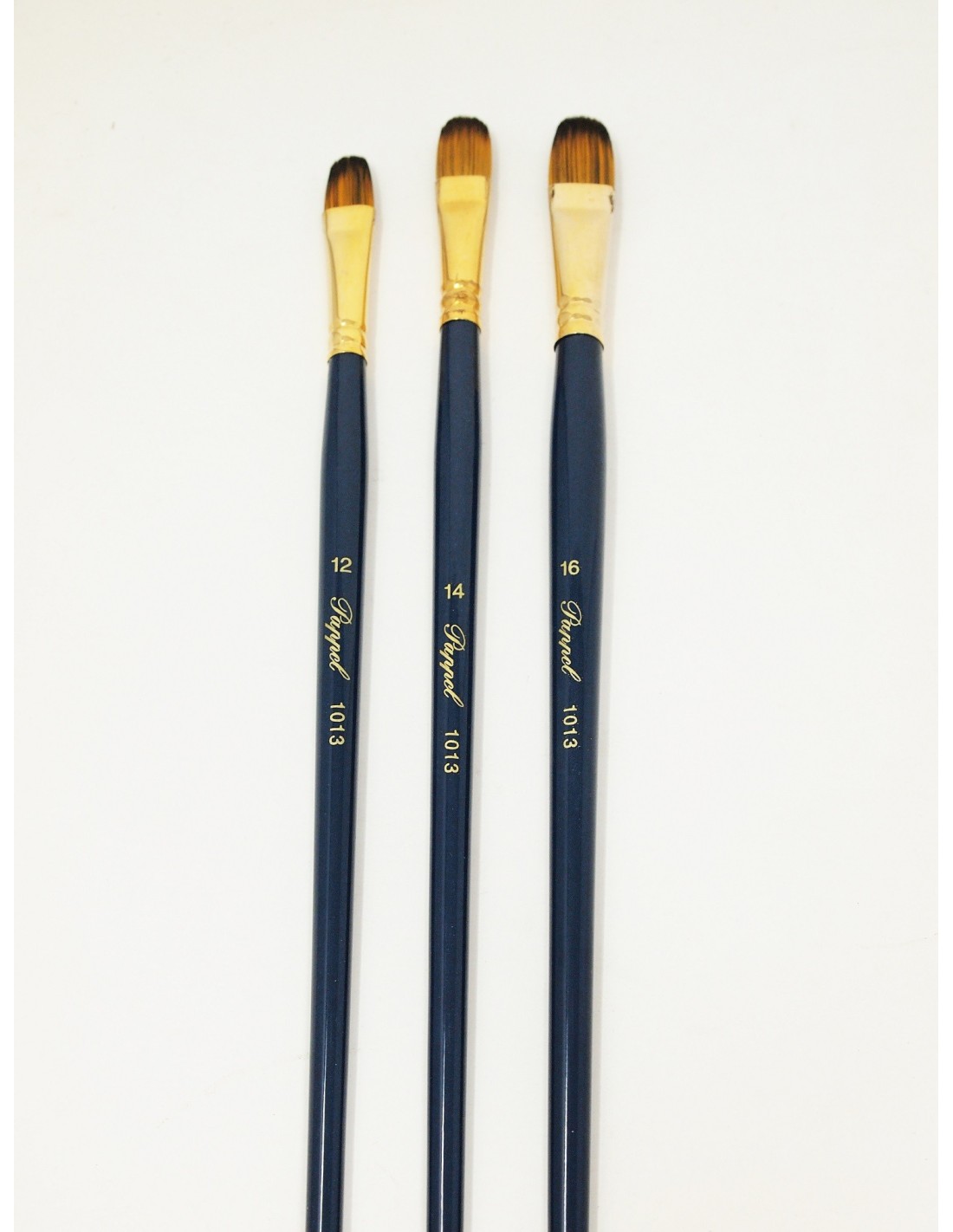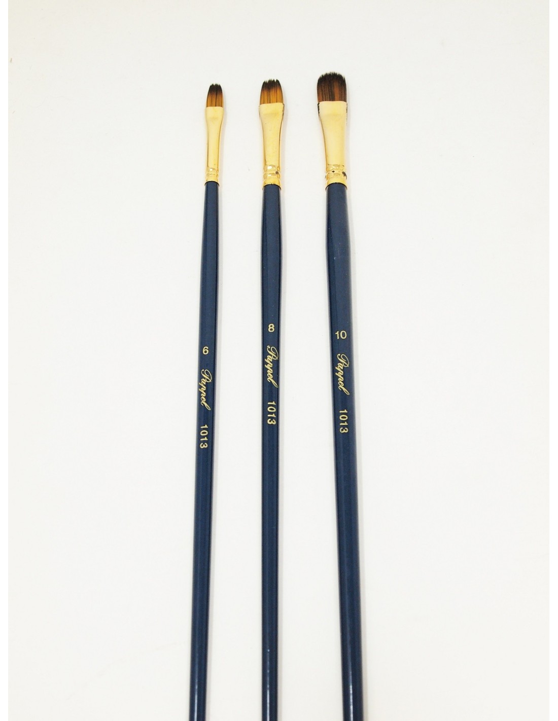 Pinceles fabricados con pelo sintéticom forma lengua de gato. Mango largo, perfecto para utilizar junto con óleo. Disponible en diferentes tamaños.